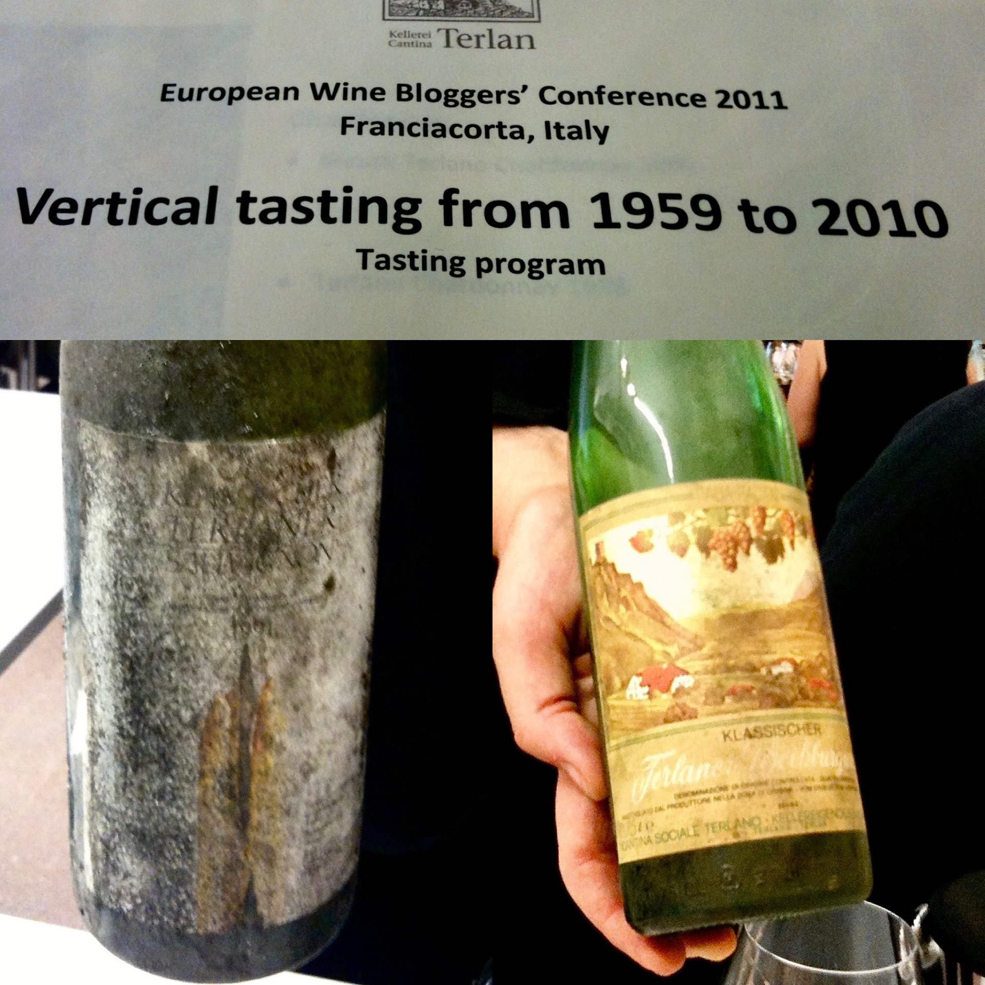 When we got to Terlan, we were sleepy from lunch and well behind schedule. Some of us wondered how Terlan could grab our interest. Then they pulled the rabbit out of the bag. A Pinot Bianco vertical tasting with a wine dating back to 1959.